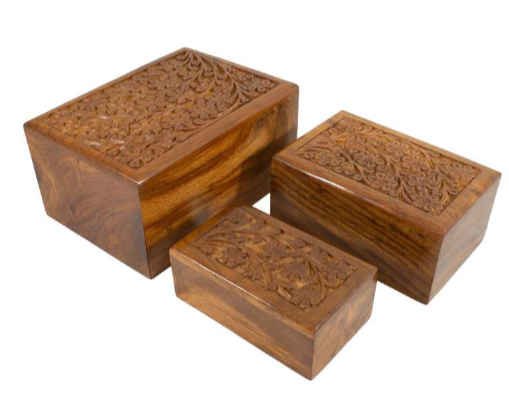 These beautiful hand carved urns made from Rosewood are an affordable, yet beautiful urn for your beloved pets final resting place.